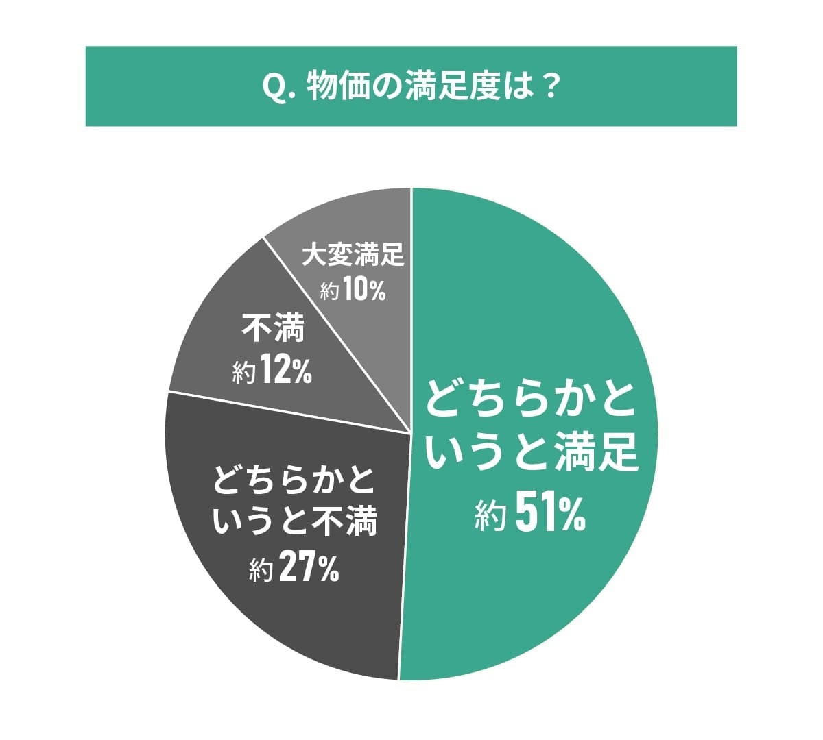 これは全国的な物価高の影響も大きいと考えられ、「今は全国どこへ行っても不満があると思う」という意見も見られました。総じて、23区内の他地域と比較すると物価は低めですが、全体的には高いという印象のようです。
