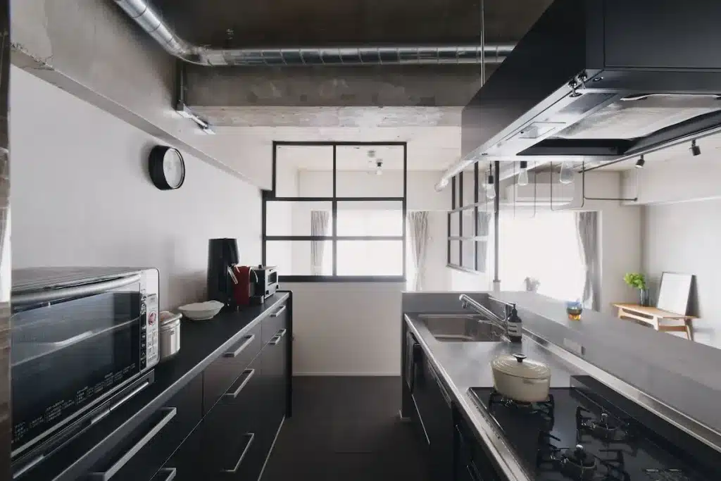 リビング、水まわり(浴室・キッチン)をコンパクトにまとめ、空間全体がつながるワンルームのような設計を採用。素材や雰囲気の変化で「行動や気持ちの切り替え」を促す構成です。駅からの距離が近く、売却することがあっても値崩れがしにくい立地、24時間ゴミ出し可能、50㎡前後という資産性の観点においても“譲れない点”を考え抜いた住まいです。